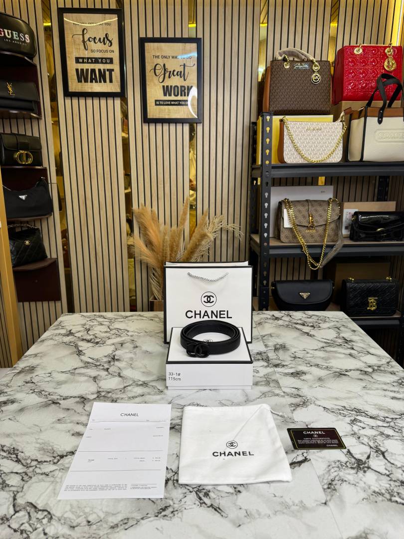 Chane_l Premium Quality Black Initials Buckle With Box And Dust Bag Including Carry Bag (33-1)